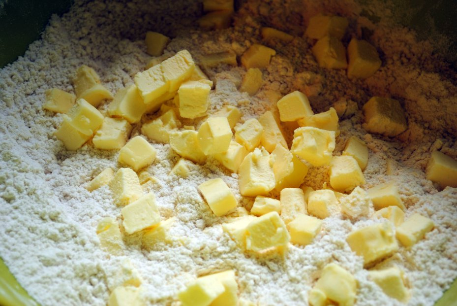 - 8 Tbs. (1 stick) cold unsalted butter, cut into