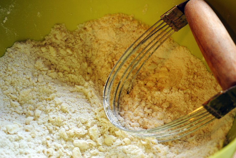 When recipes call for cold ingredients, they mean it. Keep any wet ingredients like the buttermilk in fridge as long as possible. For ingredients like butter or shortening I’ve found it’s best to cut it up into small pieces and then stick it in the freezer for at least thirty minutes prior to incorporating into the dry ingredients. The colder it is the easier it will be to get that elusive pea-sized texture they talk about. I’ve found the texture I usually achieve looks like small rocky and sandy granules than anything else.