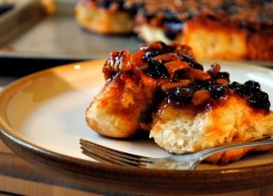 Tip on the frozen rolls: Apparently, according to Mr. French, rolls like these will rise less the longer they’re in the freezer, so don’t wait too long to use them. Spread them over the nuts and raisins, giving them room to rise.