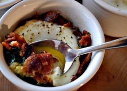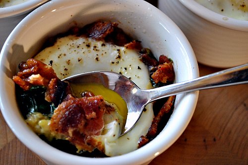 Do ahead tips: I haven’t tried any of this yet, but if you’re making these for breakfast and want to assemble things the night before, it would probably be OK to do so up to the bacon layer. Making sure you’ve properly drained that spinach, of course. Cover each ramekin with plastic wrap or foil, place in fridge and in the morning put in the eggs, cream, salt and pepper and bake. Would make your morning a lot easier, I’m betting!