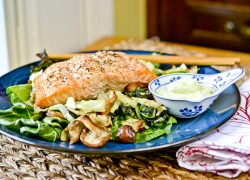 Wasabi Salmon with Bok Choy, Green Cabbage & Shiitakes
