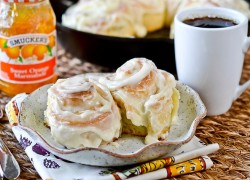 The filling is a simple, time-saving mixture of orange marmalade and ground ginger. I was a little worried about the ginger, but it’s not overpowering at all. In fact, the filling is just right all around and doesn’t make these sweet rolls too sweet.