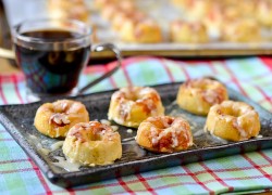 We present to you an army of miniature bacon-clad donuts. Muhahaha!