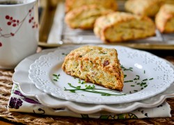 Ooh, bacon. We pay homage to your salty goodness by placing you, crumbled, into these wonderful scones!