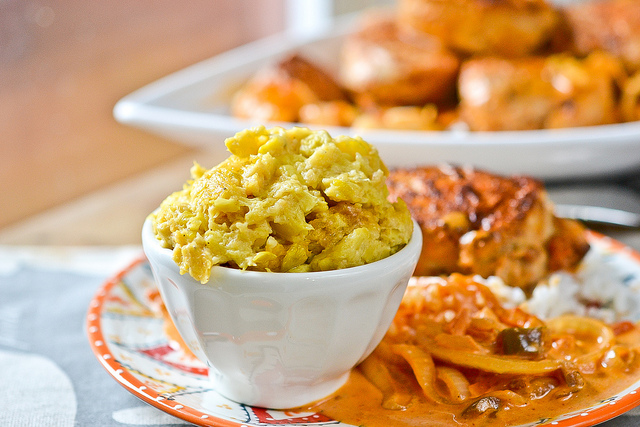 I did cook this a couple of times in the oven, but it’s been years since I did and I can’t accurately recall what the temperature was or for how long it baked. It would probably be a safe bet, though, and going on how other similar items tend to bake, to set your oven for 350 degrees and start checking it after 30 to 40 minutes. You’ll want a nice golden to golden-browned top and it should feel set and firm but also still slightly giving to the touch in the middle. Don’t burn those fingers testing it! A spoon would do.