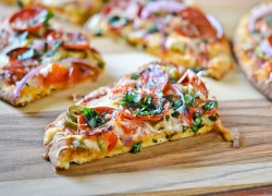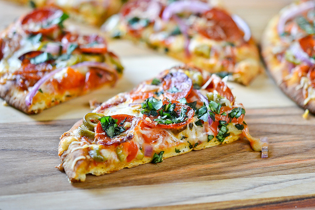 Earlier in the week we brought you our first store-bought flatbread pizza experiment and it was deeeelicious. I went to Sis Blogging Partner before all of this, though, and said not only whould we keep our food blogging that weekend nice and relaxed, but the best way to do so would be to make two different flatbread pizzas. You can do any combination of ingredients you want on pretty much any type of crust you prefer. So I went looking at recipes for something to try but inspiration as well. Something about this one just told me it could be heavenly. Sometimes there’s nothing better than that traditional deluxe or supreme style pizza.