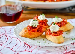 This is a great appetizer not only because it tastes really good, but because it makes a lot. In fact, we had enough of the tomato jam for more bread, but we ran out of bread. If you plan on getting two loaves of baguette, do plan to make more of the goat cheese mixture. That was a little low, too, for a second baguette.