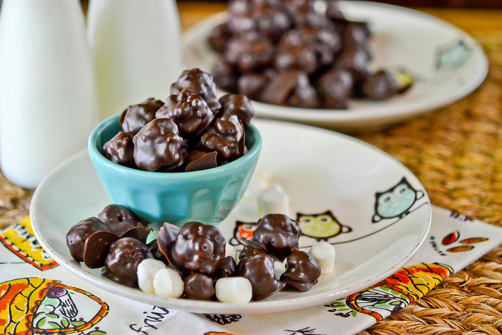 So does it taste like our inspiration? Well, not exactly. But it is yummy chocolate and marshmallow-y and a little crisp? Yup! Fun to make with the kiddos, fun to eat, it’s easy candy that is great for parties or sleepovers for the kids. Enjoy!