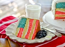 We’re going to do this post a little differently today, and that’s simply to encourage you to travel back to the very informative post at Food 52, where they detail how to make this very fun (albeit very time-involved), patriotic dessert. The full recipe is here, but the first link has a lot of helpful demo photos as well. You’ll need the info in both links to make the cake.