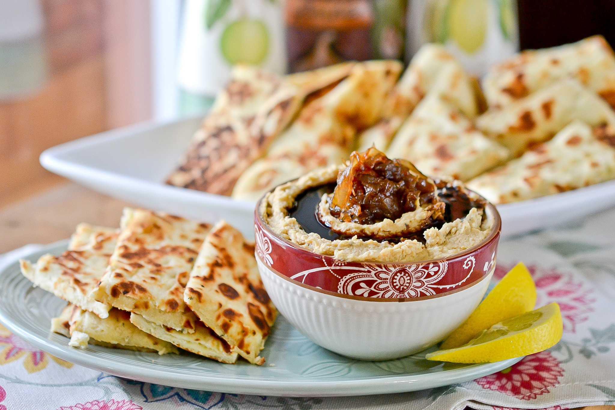 This is some of the best hummus I’ve tried to date. While I knew we’d enjoy the caramelized onion bit, I wasn’t so sure about the balsamic. But. People. I’m not kidding at all when I say that it was amazing. We boiled ours down in the same pan as the onions, still hot from them in fact. It came to a simmer almost immediately. Do be careful of the fumes - it will put off some major ones! Get that stove top ventilation going ASAP. And we advice doubling it because after we plowed through the top layer where all the balsamic was, we needed more, man! Loved this to pieces. Serve with warm flatbread or pita and feast.