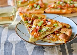 Peeps - Thanksgiving approaches! We’re having loads of people over to our house again this year, and it’s pretty much past time that I should have a game plan ready. Something like this flatbread is not a bad place to start. When you have loads of people over for the Big Feast, sometimes they arrive hours before said feast. Something delicious and easy like this flatbread is good to have on hand for a snack break or two.