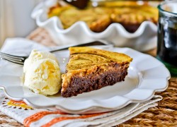 Pour the pumpkin filling over the warm brownie layer. Stir 1 tablespoon water into the remaining brownie batter, then spoon the batter (in about 6 scoops) onto the pumpkin filling. Use the back of the spoon to pull the brownie batter into the pumpkin filling and create a swirled pattern. Bake until the pie is set, 40 to 45 minutes. Transfer to a rack and let cool completely. Serve with vanilla ice cream.