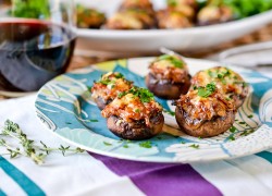 Preheat the oven to 425 degrees F. Remove the stems from 24 large cremini mushrooms.