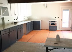Right about the beginning of May they brought the cabinets over. And Holy Big Cabinets, Batman! They looked enormous compared to our old ones, but that’s probably because these run all the way to the ceiling while the old stopped at one of those annoying and unnecessary soffit deals. Mama’s going to need a taller step stool now! Included in these was an open coat storage locker. This is a test to see if the family will actually hang up coats and put away shoes now. Heh!