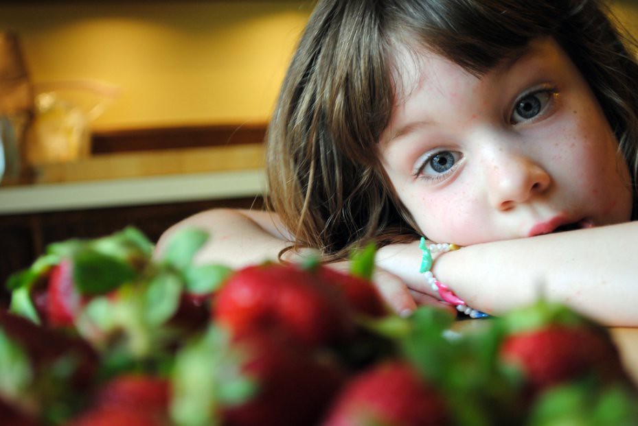 Of course, my daughter had to lend a hand, which amounted to being the entertainment and eating the work. I’m in awe still of the pic my sis took of her posing with the berries. Happens to be our mother’s favorite as well.